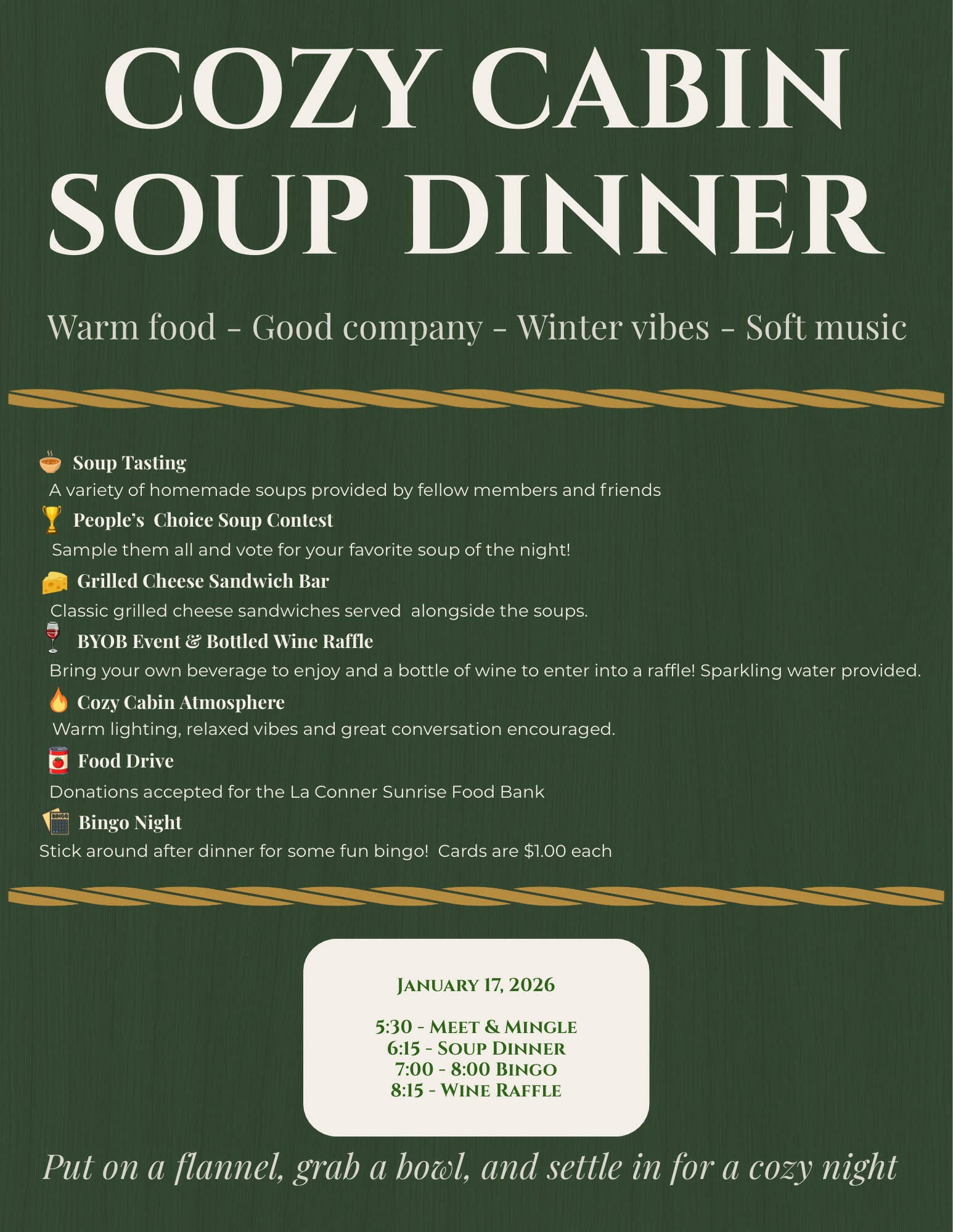 Registration for the January 17 Soup Dinner is open . . . sign up today!!
